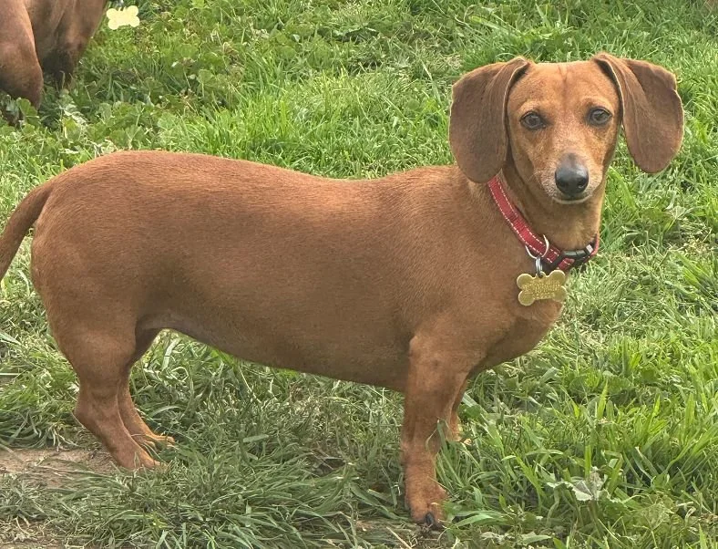When Sodo arrived in rescue, this former only dog really had his nose out of joint over the presence of another dachshund. Within a few days, he changed his tune. He and his foster's dachshund now love to play and wrestle. Once Sodo learned better doggie socialization skills, the two became as thick as thieves.