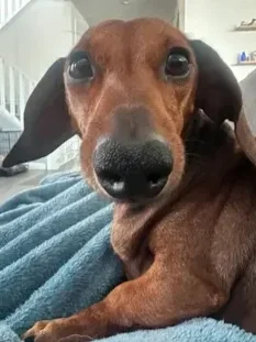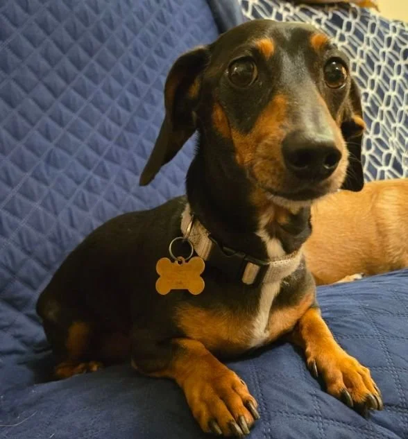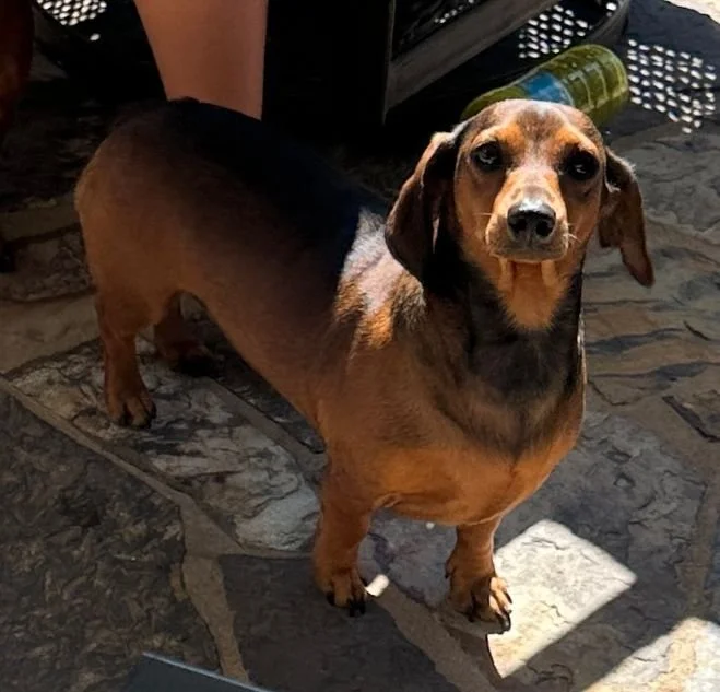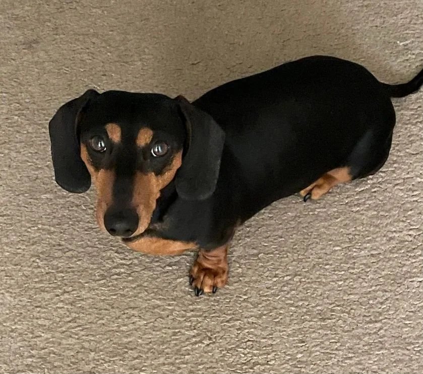 Rusty has legs a bit longer than many dachshunds, but his personality is all doxie! He has the sweetest “Disney Princess” eyes.